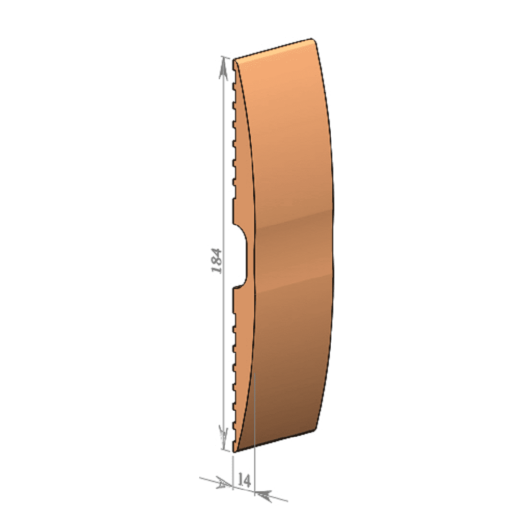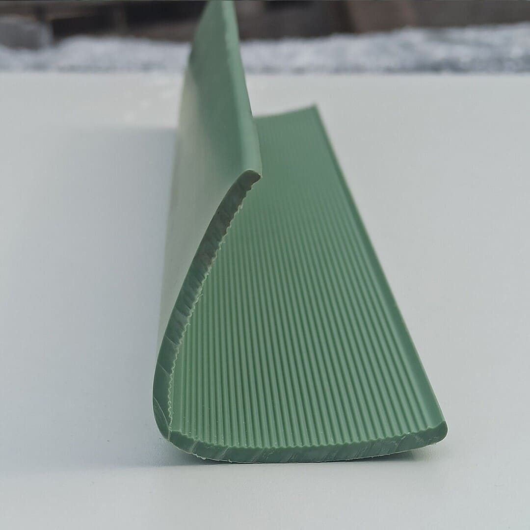 Гладкий дизайн этого отбойника облегчает уборку. Материал изготовления – негорючий ПВХ (класс ПБ – Г1). Отбойник имеет высоту 300 миллиметров и толщину 3,5 миллиметра. Доступны различные цвета, что позволяет легко вписать отбойник в любой интерьер. Поставляется в виде рулонов длиной 25 метров