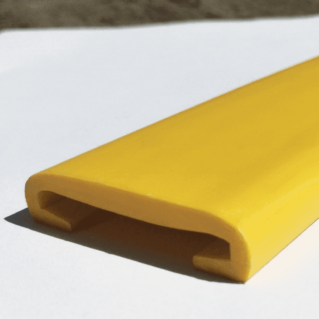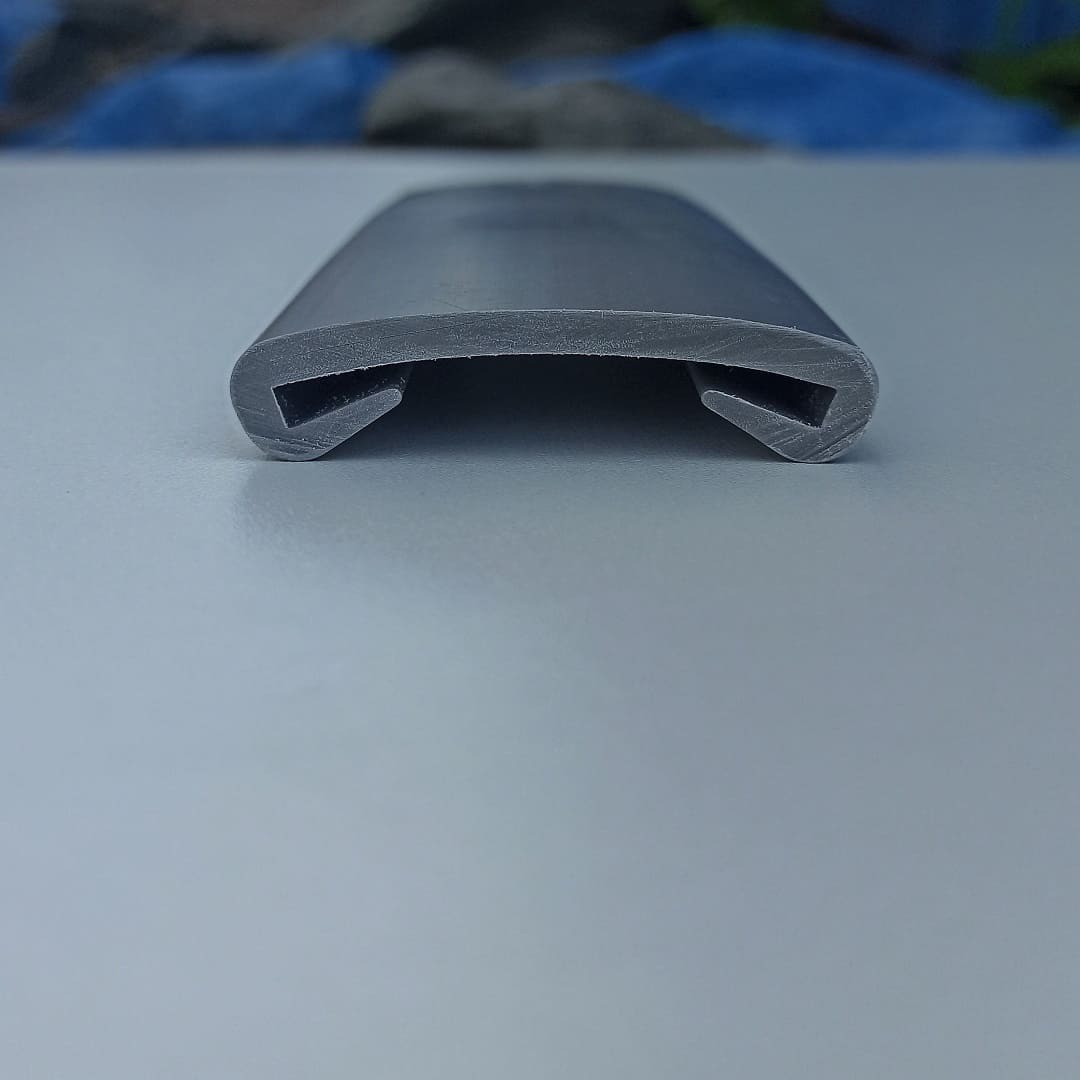 Накладка для перил предназначена для использования в обшивке хоккейных бортов и подходит к частым моющим процедурам с использованием различных дезинфекционных средств. Возможность индивидуализации цвета по системе RAL Classic при заказе оптом от 420 метров. Произведено из высококачественных первичных ПВХ гранул. Предлагается в размерах 80x10 мм. Установка подходит как для стандартных, так и для изогнутых перил, благодаря возможности гибки после подогрева строительным феном. Товар поставляется в рулонах по 10 метров.